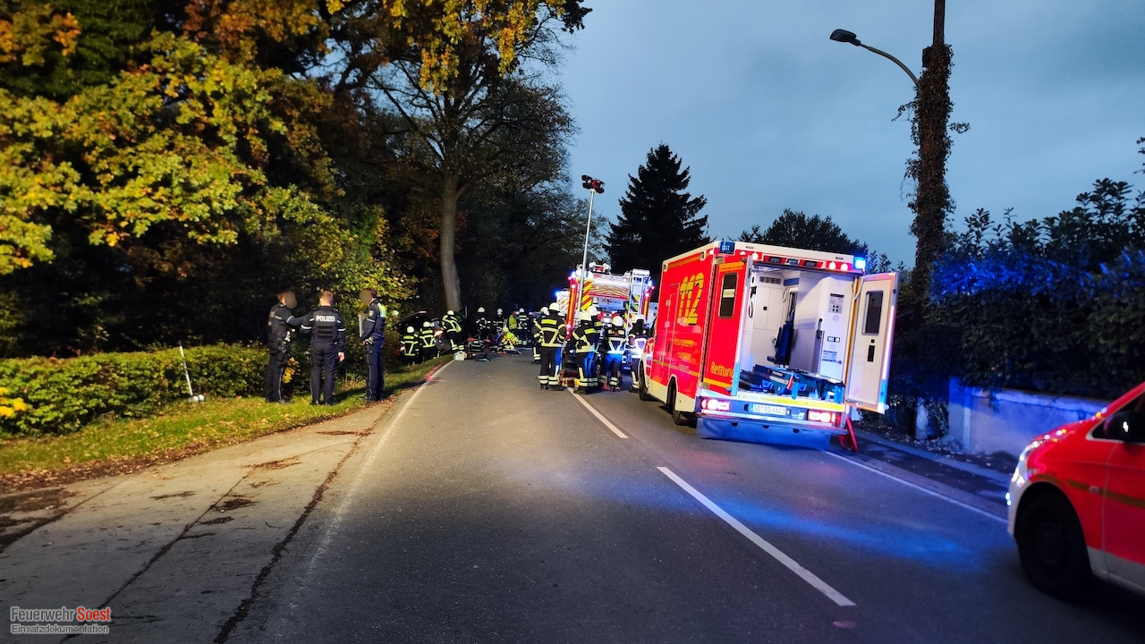 In Soest-Ruploh kam es zu einem Verkehrsunfall, bei dem ein Porsche Cayenne von der Fahrbahn abkam und frontal gegen einen Baum prallte. Der Fahrer wurde dabei in seinem Fahrzeug eingeschlossen und war nicht in der Lage, dieses selbstständig zu verlassen.