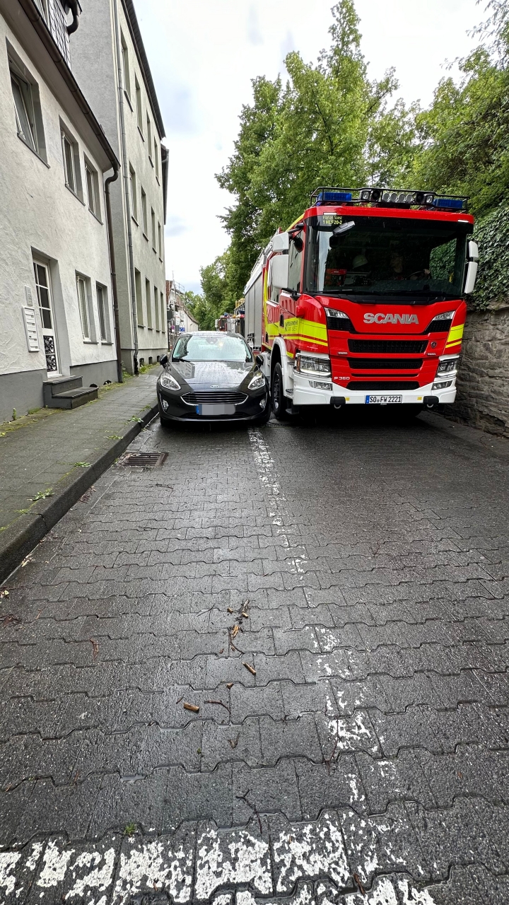 Es gibt Einsätze, bei denen kommt es auf jede Sekunde an, um Menschenleben zu retten. Doch wenn dann die Anfahrtswege für die Einsatzfahrzeuge erschwert oder gar vollständig blockiert werden, kann dies fatale Folgen haben. Um die Bürgerinnen und Bürger mehr zu sensibilisieren, hat das Ordnungsamt der Stadt Soest einige Bereiche in Soest kontrolliert und wir haben sie dabei unterstützt. Innerhalb kürzester Zeit sind bereits mehrere Engstellen aufgefallen, an denen die Großfahrzeuge nur erschwert und mit Schrittgeschwindigkeit vorbeifahren konnten. Dies kostet im Ernstfall wertvolle Zeit. Die Gründe hierfür waren z.B. geparkt Fahrzeuge auf Sperrflächen, zu nah an Einmündungen geparkt oder die abgestellten Fahrzeuge standen zu weit vom Bordstein entfernt. Diese teilweise bis zu 20cm Abstand können entscheiden sein, ob unsere Einsatzfahrzeuge vorbeikommen oder nicht. Ein weiteres Problem waren Hecken und Sträucher, die nicht zurückgeschnitten wurden und dadurch in den Verkehrsraum ragten.