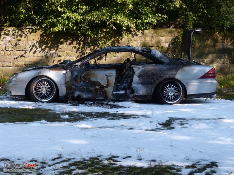 Ein in Vollbrand stehender PKW wurde von der Feuerwehr mit einem C-Rohr gelöscht.