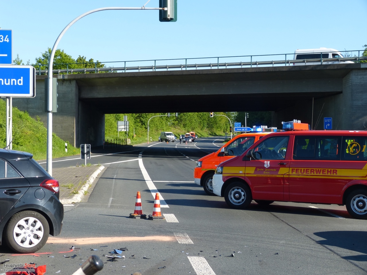 Verkehrsunfall an der Kreuzung zur A44 Soest-Ost alarmiert. Bereits auf