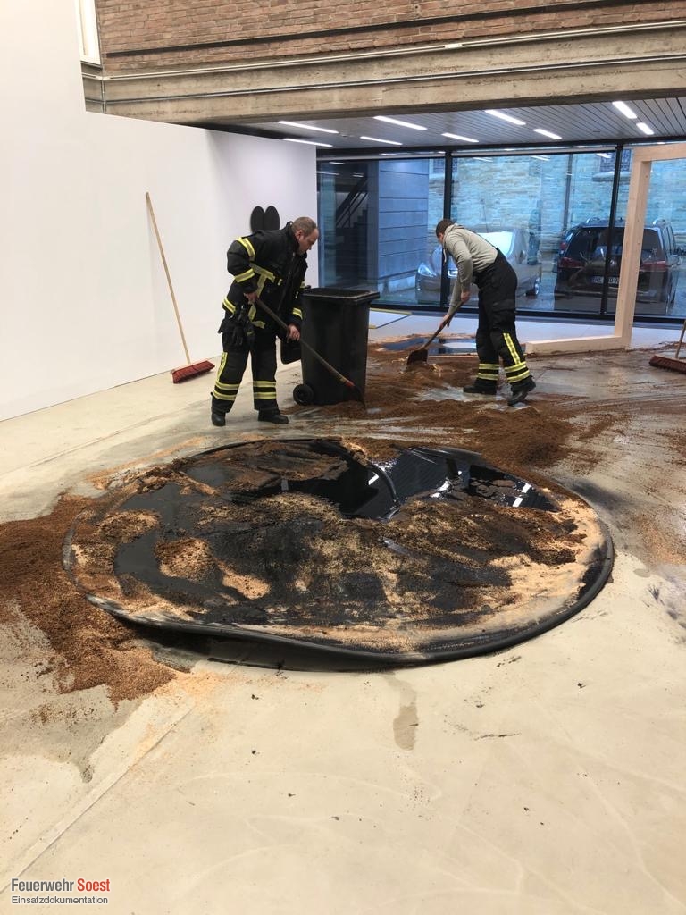 Aus einem Kunstwerk sind ca. 115 Liter Speiseöl ausgelaufen. Diese wurden durch uns mit Ölbindemittel abgestreut.