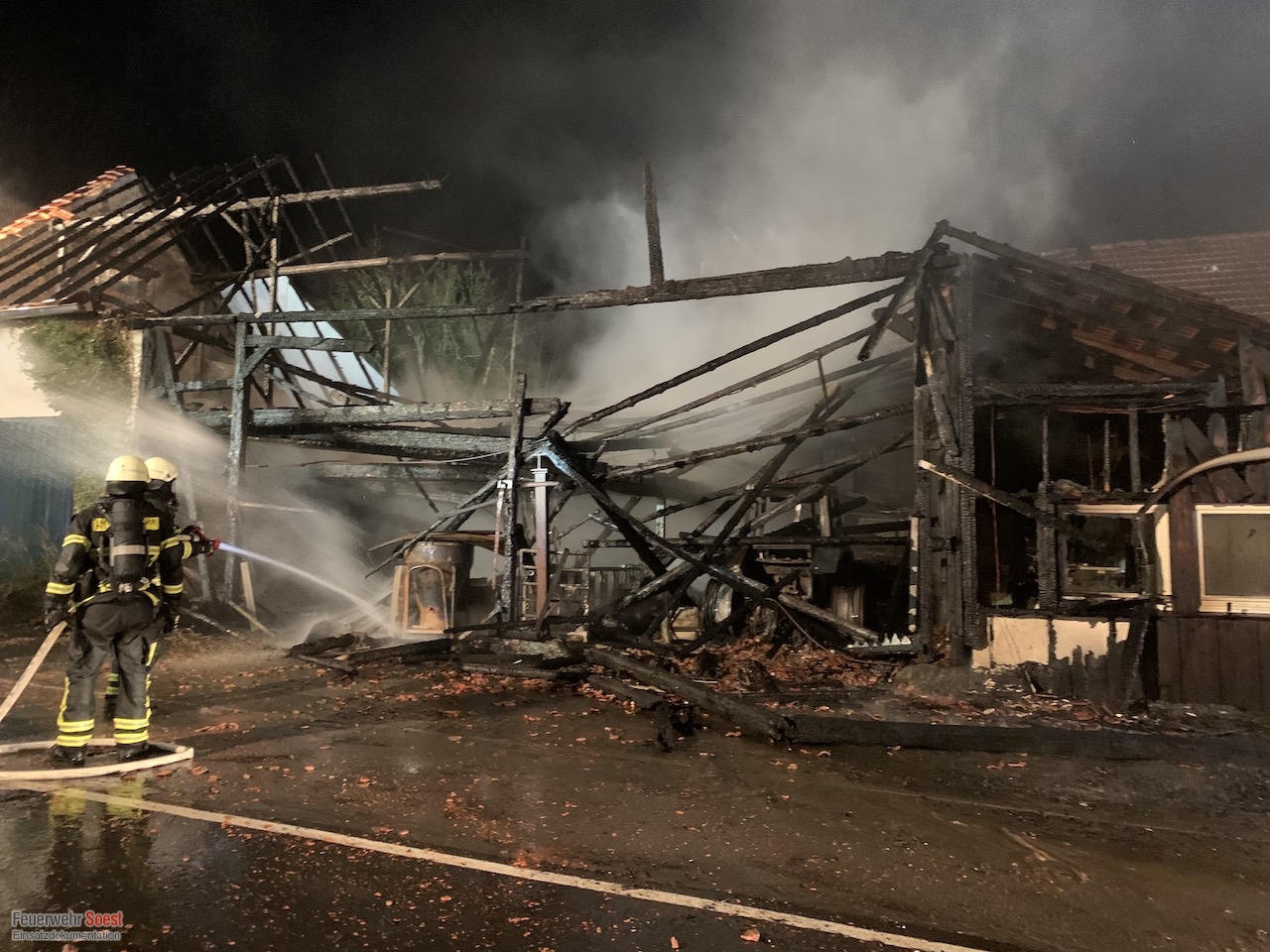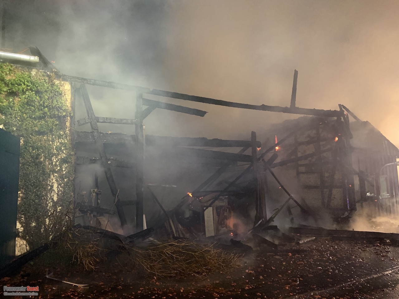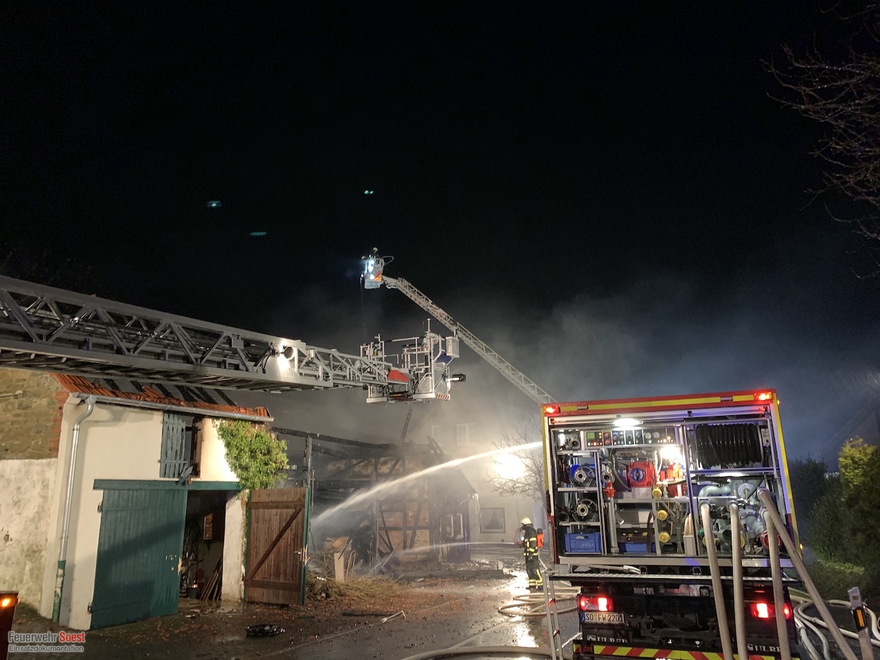 Um 04:47 Uhr wurden der Löschzug 2 & 5 zu einer brennenden Scheune in Ostönnen alarmiert. Bereits beim Eintreffen der ersten Kräfte stand die Scheune in Vollbrand. Umgehend wurden die beiden Löschzüge der Innenstadt alarmiert. Außerdem wurde eine umfangreiche Brandbekämpfung eingeleitet. Zusätzlich wurden im weiteren Verlauf noch die Löschzüge 3 & 4, sowie die Drehleiter der Feuerwehr Werl nachalarmiert.