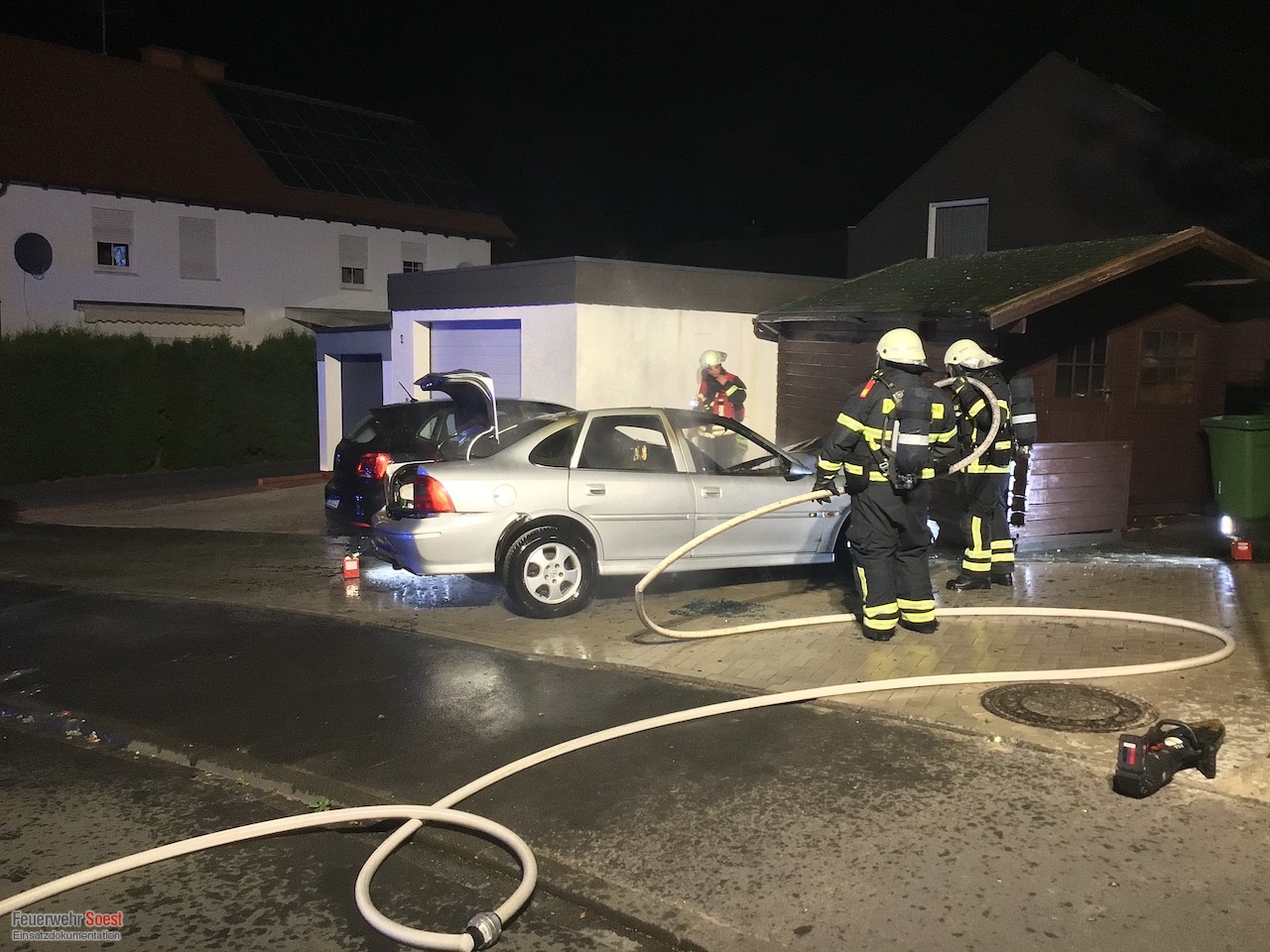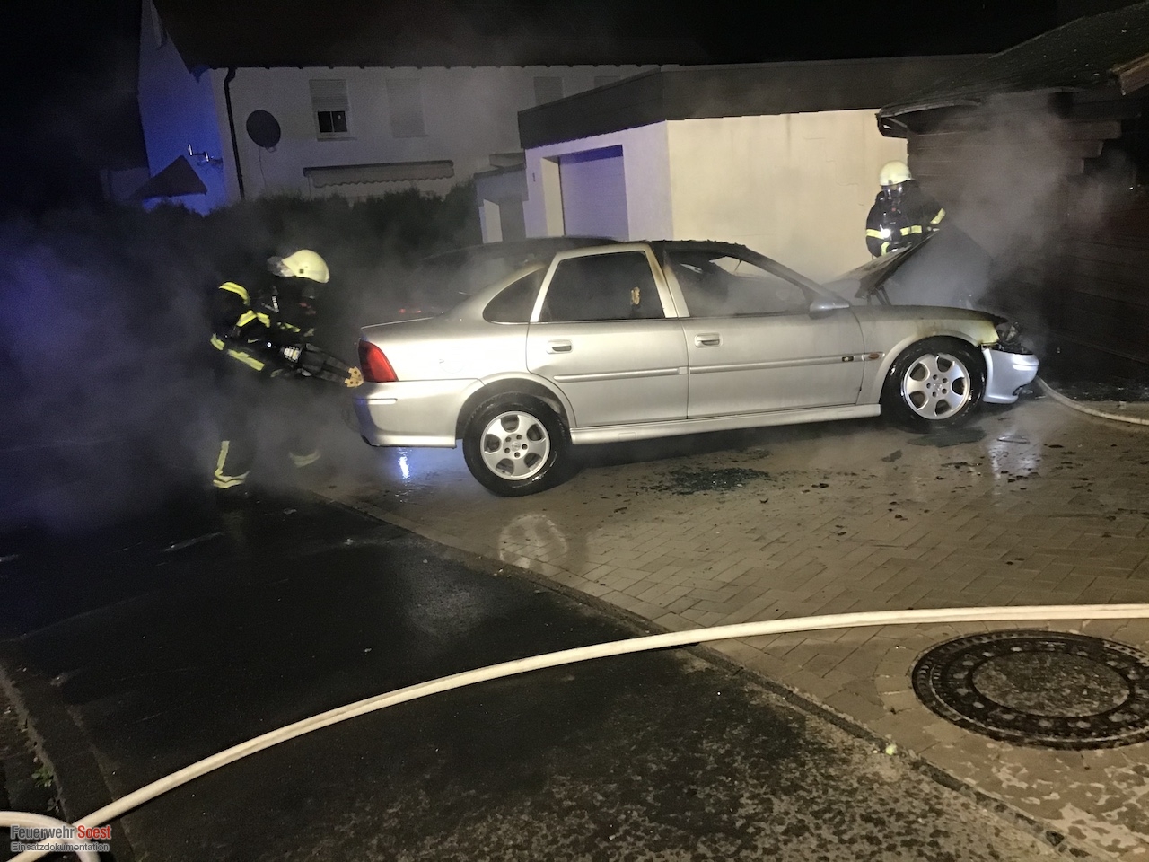 Bereits bei Eintreffen stand ein Pkw im Bereich des Motorraumes in Vollbrand. Dieser wurde durch uns durch ein C-Rohr mit einem Trupp unter Atemschutz abgelöscht.