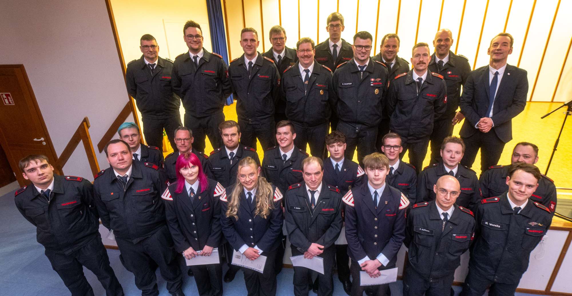 zum Hauptfeuerwehrmann: Marvin Lasar, Simon Kurz; zum Unterbrandmeister: Robin Uebach, Jonas Mattheus, Reiner Bröcking, Jan Ladouceur, Sebastian Neuperger, Lukas Fricke, Thies Klüsener, Jannis Würfel;