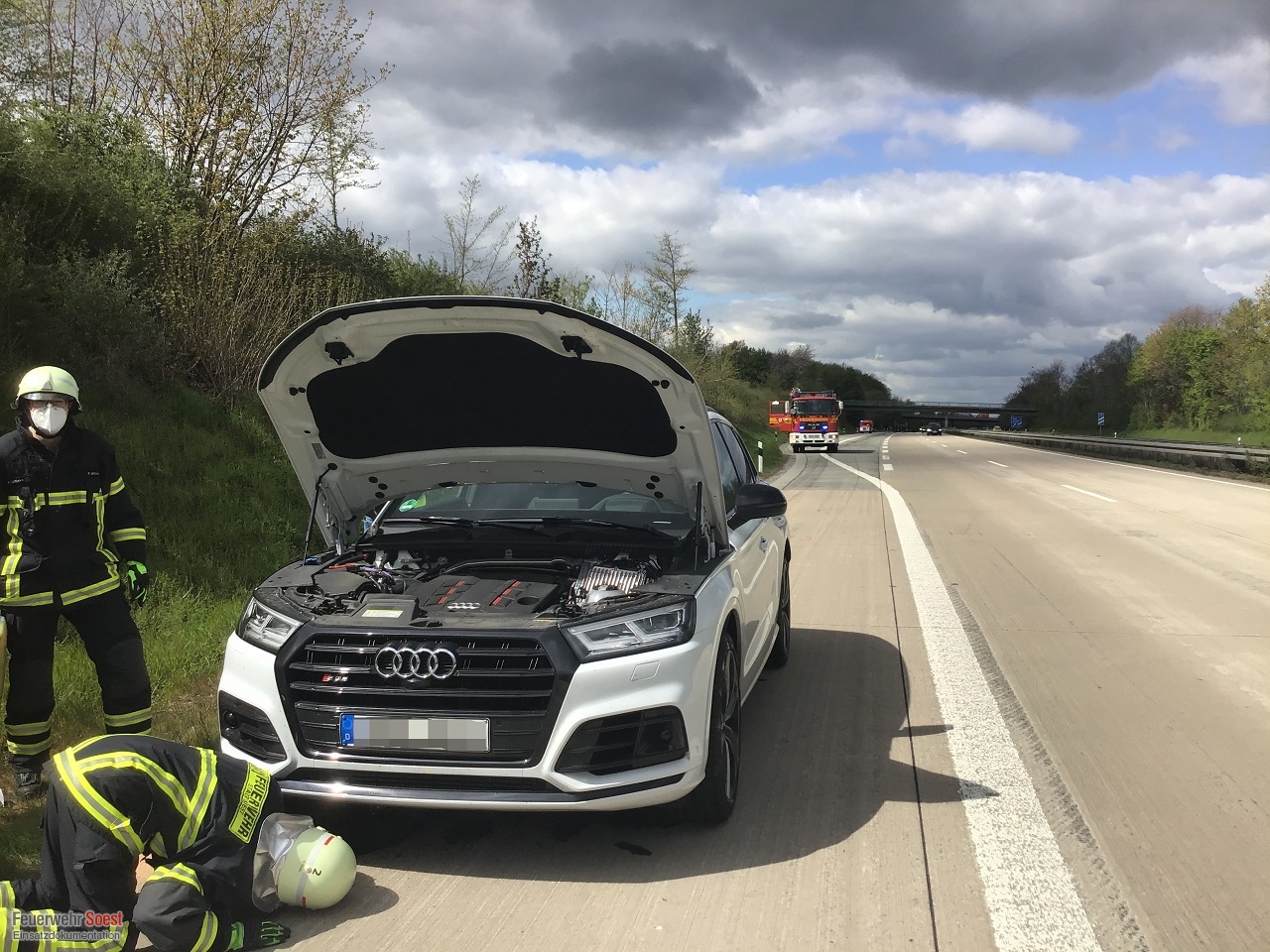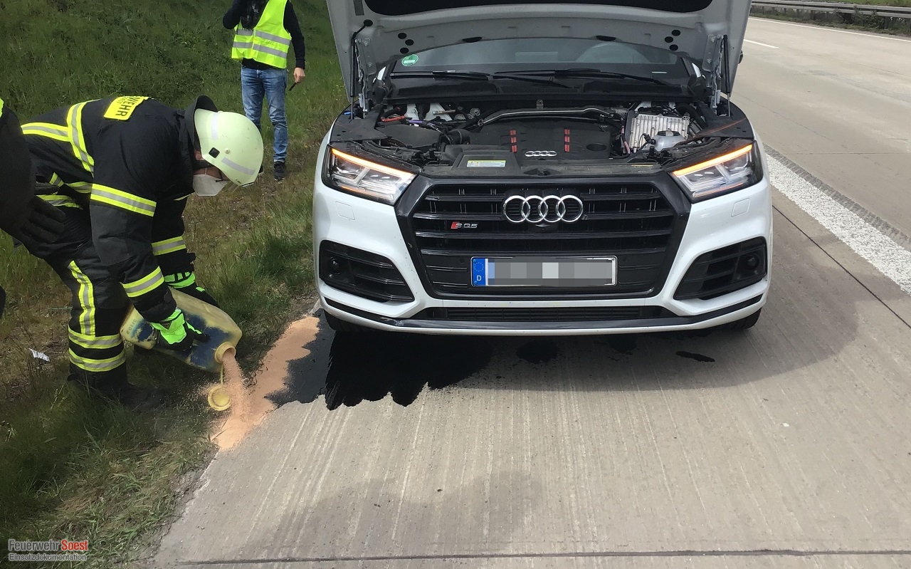 Ein Pkw stand mit einem geplatzten Motor auf dem Standstreifen der A44. Wir streuten das Öl ab und sicherten die Einsatzstelle bis zum Eintreffen der Autobahnpolizei ab.